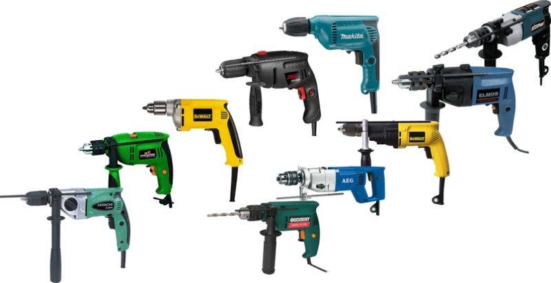- Обычная дрель, которая используется для сверления отверстий в различных материалах. Ее отличие от перфоратора заключается в меньшей мощности и отсутствии режима удара. Она является наиболее распространенной и популярной формой дрели.