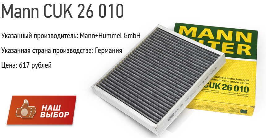 - чешская компания Mann Filter поставляет в Россию обычные фильтры стоимостью в районе 400 рублей, которые продемонстрировали отличный показатель аэродинамического сопротивления в новом незагрязнённом состоянии и гораздо худший – в загрязнённом;