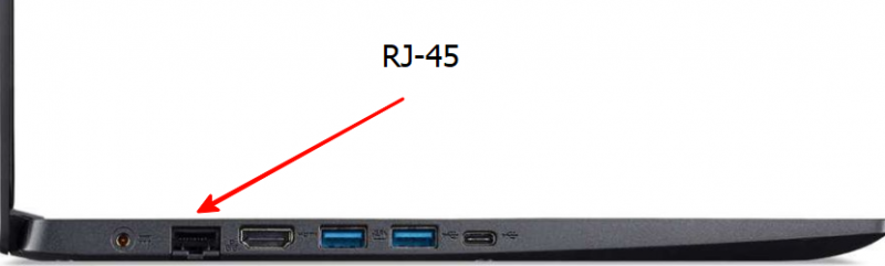 ЛЕВАЯ СТОРОНА НОУТБУКА: разъем RJ-45 присутствует