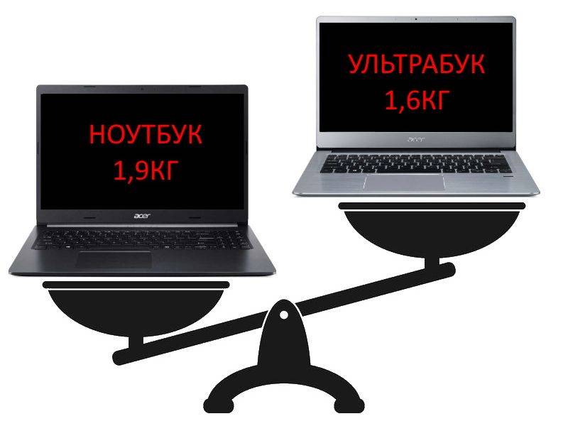 - Вес — ультрабук легче;