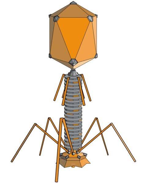 Структура типичного вируса-бактериофага (художественное изображение). Adenosine / Wikimedia
