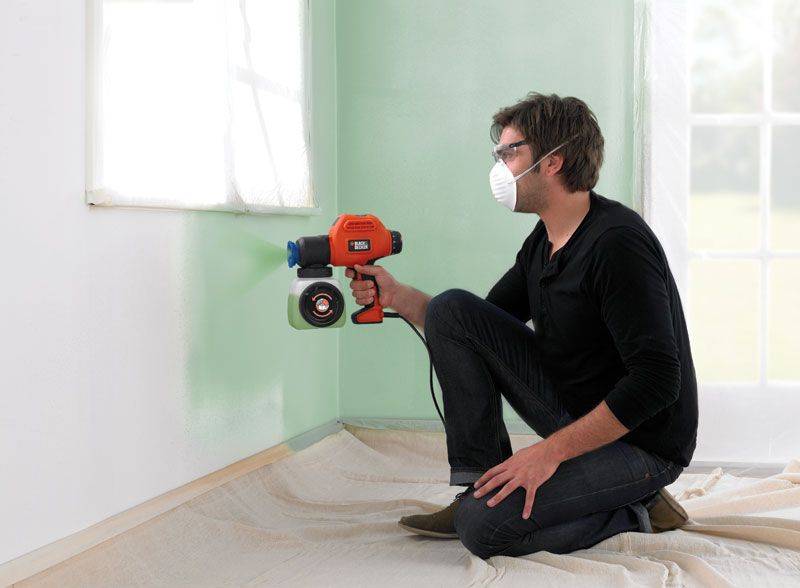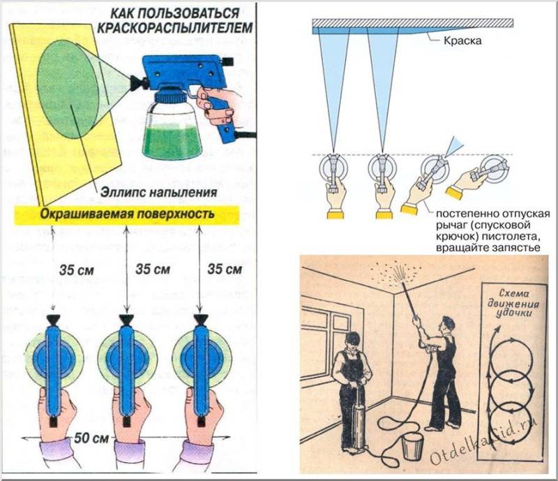 Скорость окрашивания краскопультом в несколько раз выше ручного варианта, но для такой работы необходим определенный навык