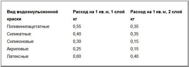 Если взять усредненные данные, которые предоставляют производители, то расход водоэмульсионной краски составляет 200 мл на 1 квадратный метр обрабатываемой поверхности. Но на деле данная характеристика может быть другой из-за впитываемости основания, степени его подготовки, используемого инструмента и так далее.
