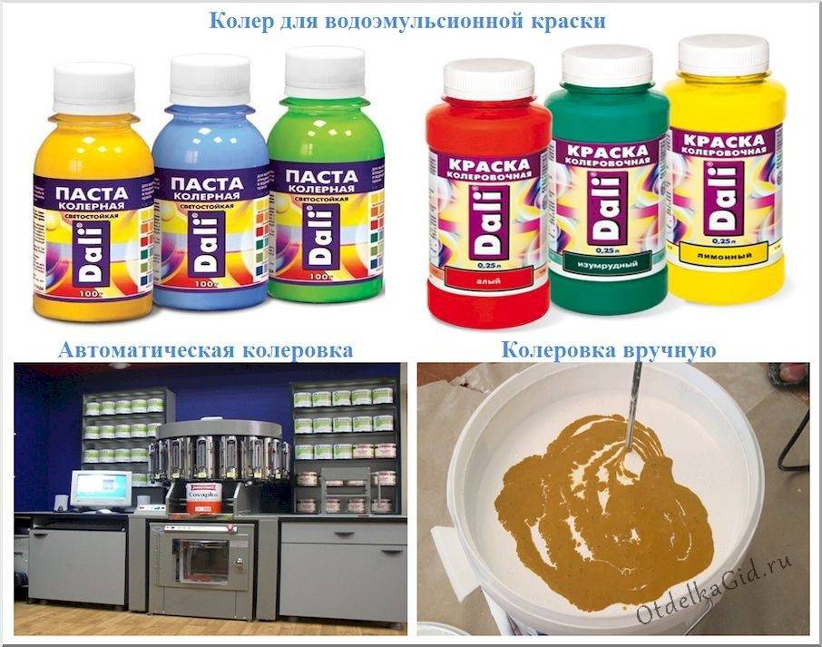 На малых объемах белую водоэмульсионную краску можно колеровать вручную, но при больших площадях лучше использовать автоматику, иначе будут расхождения в оттенках