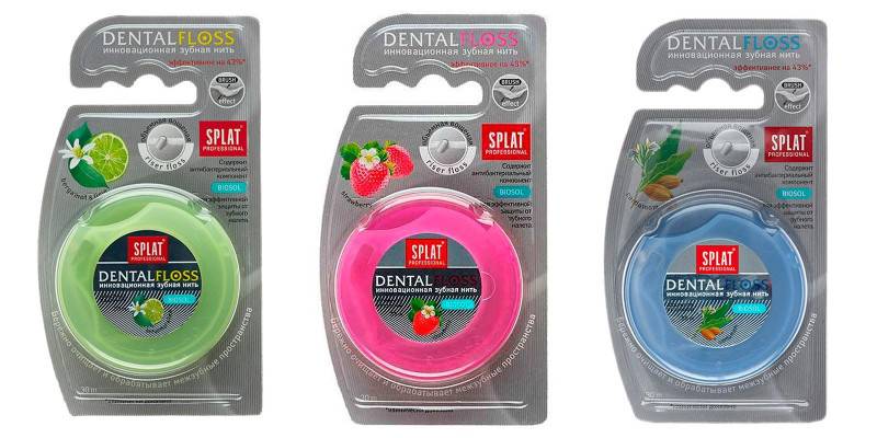 Особенность флосса Splat заключается в гипоаллергенности пропитки и материалов, из которых он изготовлен. Лента имеет оптимальную ширину и за один раз обрабатывает зубы с двух сторон, что экономит время. Поверхность изделия покрыта воском, что позволят ему скользить по эмали и десне. Нить легко проходит узкие щели без приложения особых физических усилий. Мягкое воздействие средства гарантирует отсутствие крови и неприятных ощущений. Ее волокна имеют особую структуру, в основе которой находится серебро. Благодаря этому обеспечивается ярко выраженный антибактериальный эффект.