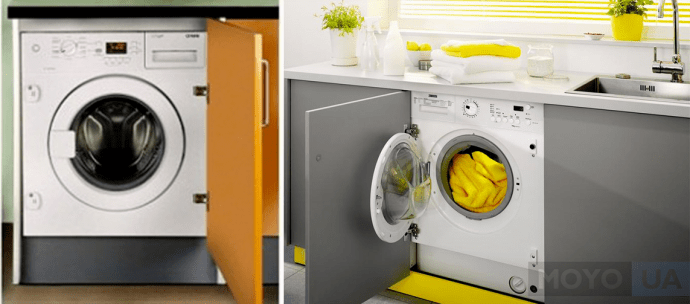 Что такое встраиваемая стиральная машина? Это агрегат, в котором предусмотрены приспособления для монтирования в мебель. Его скрывают за дверьми или наружными фасадами.