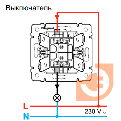 - При подключении по схеме , фаза будет сначала проходить через лампу, а разрываться на выключателе (т.е. в выключенном состоянии выключателя лампа будет всегда находиться под напряжением). А это неправильно! При правильной схеме подключения, «фаза» в выключенном состоянии разрывается на выключателе и напряжения на лампе не будет (т.е. когда Вы будете менять сгоревшую лампу, то Вас не ударит током).