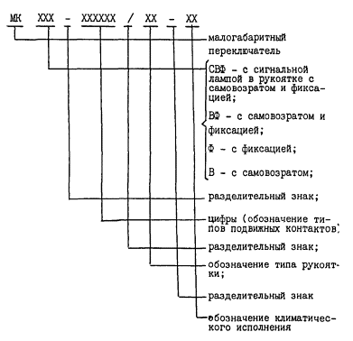 2.1.1. Структура условного обозначения типоисполнителей переключателей