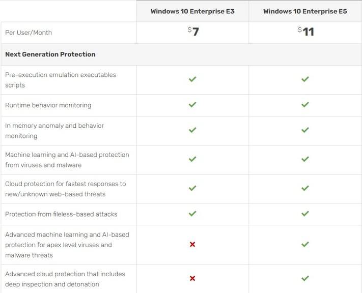 Lastly, you can also buy Microsoft Defender for Endpoint (previously called Microsoft Defender ATP) separate from Windows 10 E5, for $5.25 per user/mo.