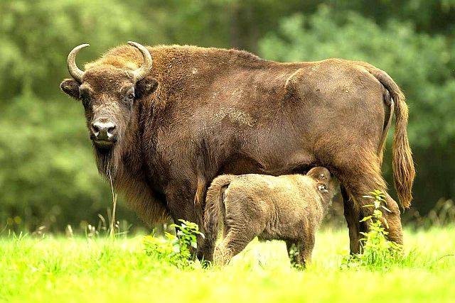 , и до сих пор, даже при рождении в дикой природе, в потомстве зубра преобладают самцы, для восстановления популяции использовали американского бизона