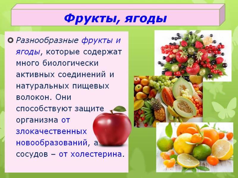 Их важность в человеческой еде трудно переоценить. Организм человека, регулярно потребляющего фрукты, каждый день получает суточную норму антиоксидантов, клетчатки, витамина С