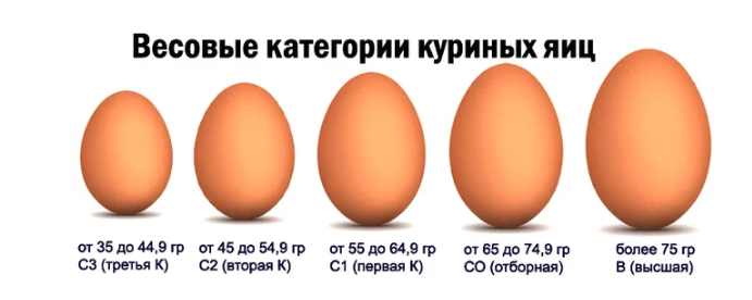 Никаких сложных формул здесь нет. Категории – это не что иное, как масса яйца. Всего их пять. Три из них можно встретить не часто на прилавках, а «героев этой статьи» обычный потребитель ежедневно видит на прилавках. Итак, категории: