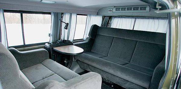 Салон «Баргузина» – размером с небольшую комнату: длина 2,5 м, ширина 1,8 м, высота 1,33 м. Можно без проблем переходить с места на место, пригнувшись. Посередине откидывающийся столик, оборудованный штатной лампой. Велюровая обивка на всех версиях выглядит в салоне ГАЗ-2217 очень достойно, а специальными занавесками можно отгородиться от мира, если захочется отдохнуть.