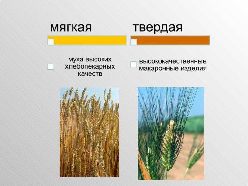 Твердая и мягкая пшеница имеют ряд ботанических отличий, предопределяющих условия их произрастания и качественные характеристики муки, получаемой из них.