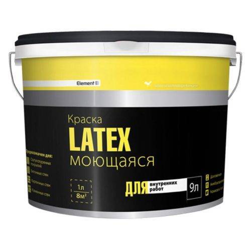Латексная краска отличается устойчивостью к загрязнениям и не скапливает пыль. К тому же она помогает сформировать пылеотталкивающую поверхность. Вещество пропускает воздух и отличается дышащими характеристиками.