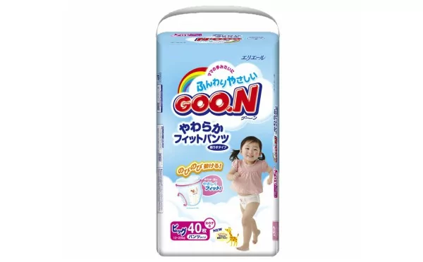 Goo.n нейтрализует неприятные запахи, «запирая» их внутри памперса. Эластичный поясок, боковинки и надежные застежки не сковывают движений. Продукт очень популярен в нашей стране, при этом высокая стоимость по сравнению с аналогами не пугает покупателя. Подробнее о японских подгузниках →