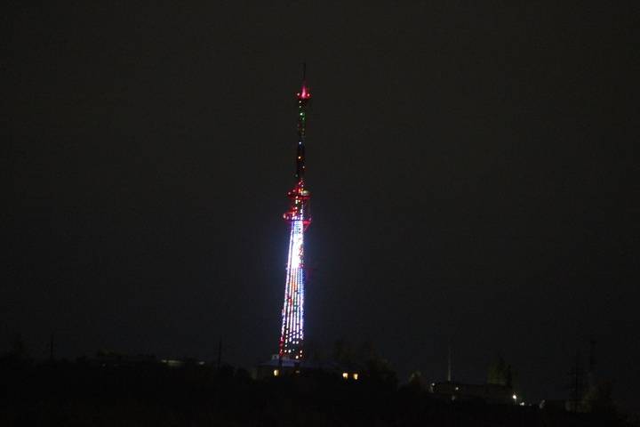 Саратовская телебашня включила праздничную подсветку к 8 марта