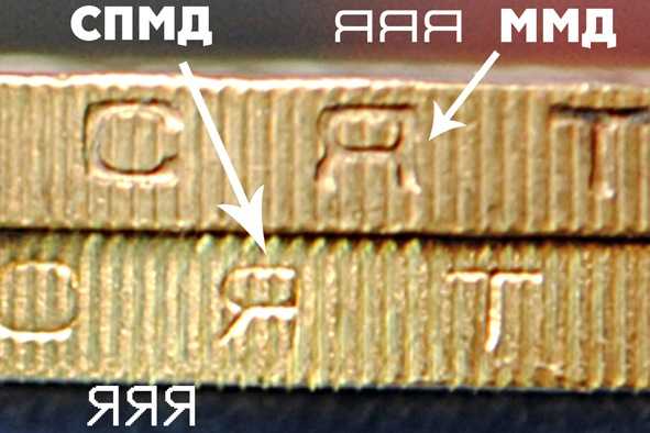 Внимательно приглядевшись к обозначениям на монетах, можно увидеть аббревиатуры СПМД и ММД. Но что же значат эти символы и в чем заключаются их отличия? Разберем этот вопрос подробнее.