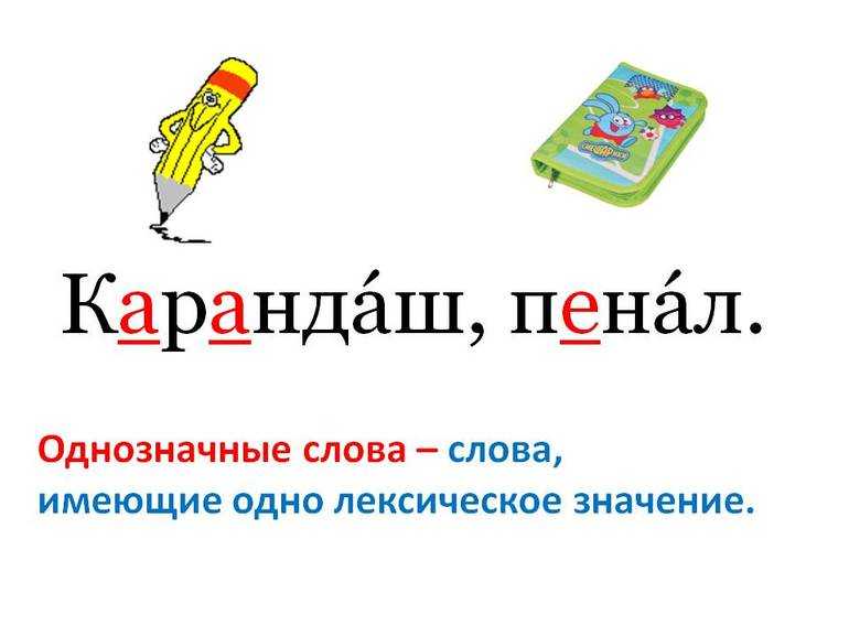 Слова, которые обладают всего одним лексическим значением называются однозначными (моносемантическими). Их в русском языке довольно много.