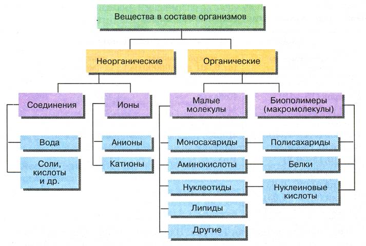 | Органические вещества | Неорганические вещества |
