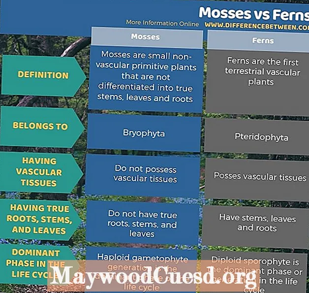 Мхи – это небольшие несосудистые наземные споровые растения, а папоротники – первые наземные сосудистые растения. Итак, в этом ключевое отличие мха от папоротника. Мхи принадлежат к типу Bryophyta, а папоротники – к типу Pteridophyta.