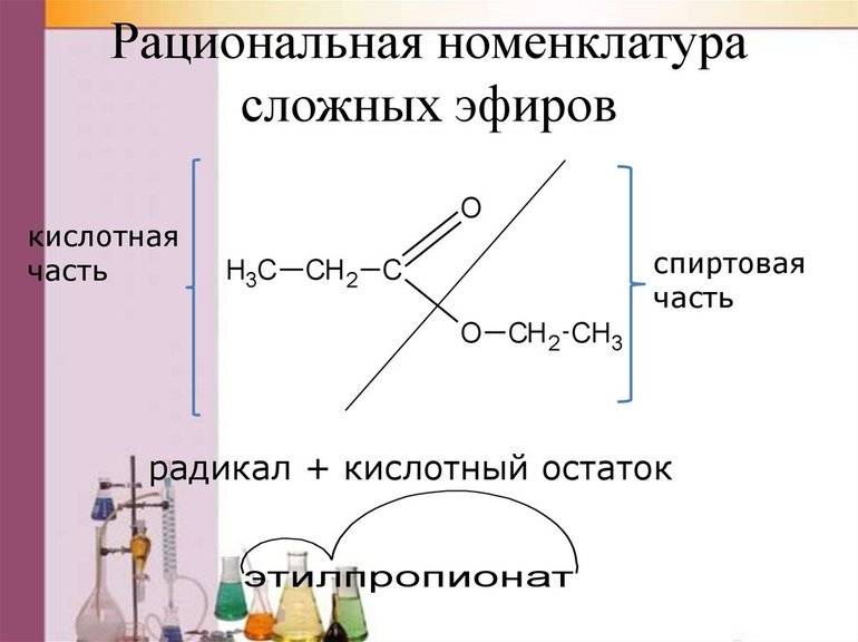 Конечно, радикалы и кислотные остатки в сложных эфирах могут иметь более сложную структуру. Ниже показан такой пример: