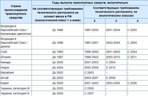 Напрямую соответствие нормам Евро 2, 3, 4, 5 не указывается, но зная год выпуска и страну определить искомый класс экологической безопасности не составит труда. Со своей стороны ФТС России дает возможность всем желающим воспользоваться таблицей соответствия автомобиля экологическим стандартам Евро 2, 3, 4, 5 собственной разработки.