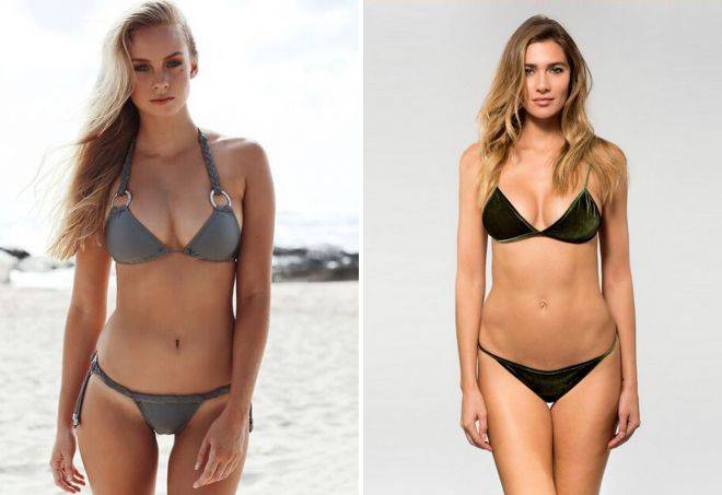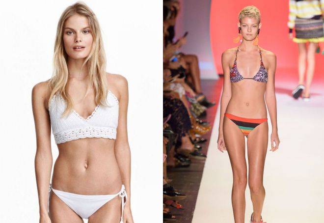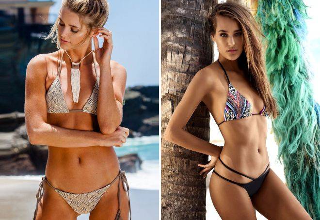 Раздельный купальник с трусиками-стрингами дарит дизайнерам еще больший простор воображения. В первую очередь, эксперты в области моды экспериментируют с видом трусиков. Они могут быть следующими: