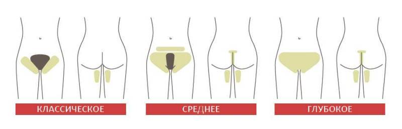 Прежде чем приступать к процедуре по удалению растительности в области бикини, необходимо определится какой вид депиляции будет проведен. Чтобы сделать правильный и удовлетворительный выбор по душе, нужно рассмотреть основные типы сахарной эпиляции в деликатной женской зоне: бикини классическое, среднее и глубокое.