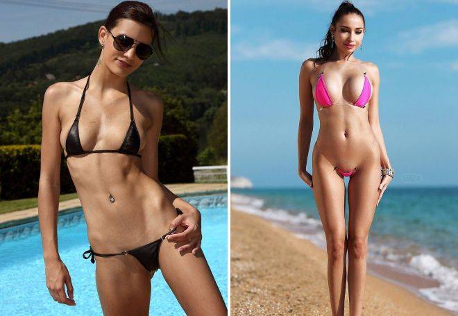Немаловажно отметить, что по причине миниатюрных трусиков, этот элемент гардероба не на каждой барышне будет сидеть красиво. С чей фигурой купальник-стринги сыграет злую шутку, так это красоток plus size