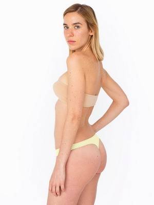 Низ в виде стрингов гармонично существует и закрытом виде купальника. Он идеален для занятий водным спортом, игры в пляжный волейбол и для другого активного времяпровождения.