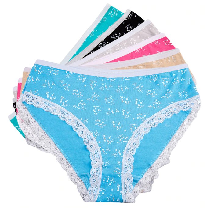 - Хлопок. Самый распространенный материал для женских трусиков, особенно для повседневных. Хлопок очень гигиеничен, гипоаллергенный, мягкий, долго сохраняет хороший внешний вид, обладает превосходным воздухообменом и легко стирается.
