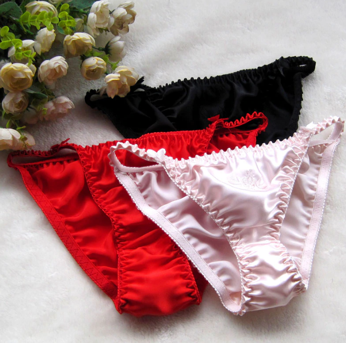 - Шелк. Очень нежный мягкий материал, дающий ощущение прохлады и свежести. Идеально подходит для теплого времени года. Трусики из шелка всегда выглядят красиво и дорого, из него часто шьют эротические модели, они обладают глянцевой шелковистой поверхностью с блеском, их очень приятно носить. Шелк гипоаллергенен и гигиеничен, обладает высокой прочностью.