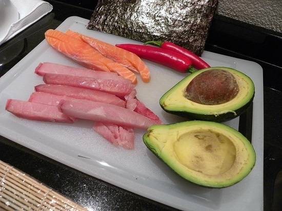 Для изготовления суши используют семгу или тунца, копченого угря, креветок и осьминогов.
