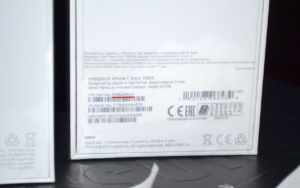Кроме этого, в нижней правой части наклейки вы можете увидеть знак Ростеста — РСТ (для iPhone, выпущенных до 2020 года, например, iPhone 7 или 9) или знак EAC (для устройств, выпущенных после 2020 года, например, iPhone 13 или 14)