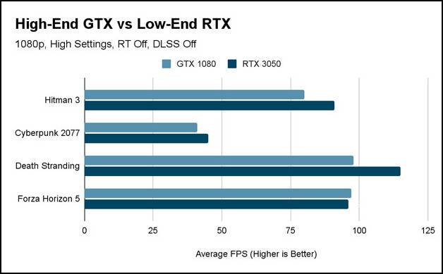 High-End GTX vs Low-End RTX Rasterization Performance(DLSS Off)