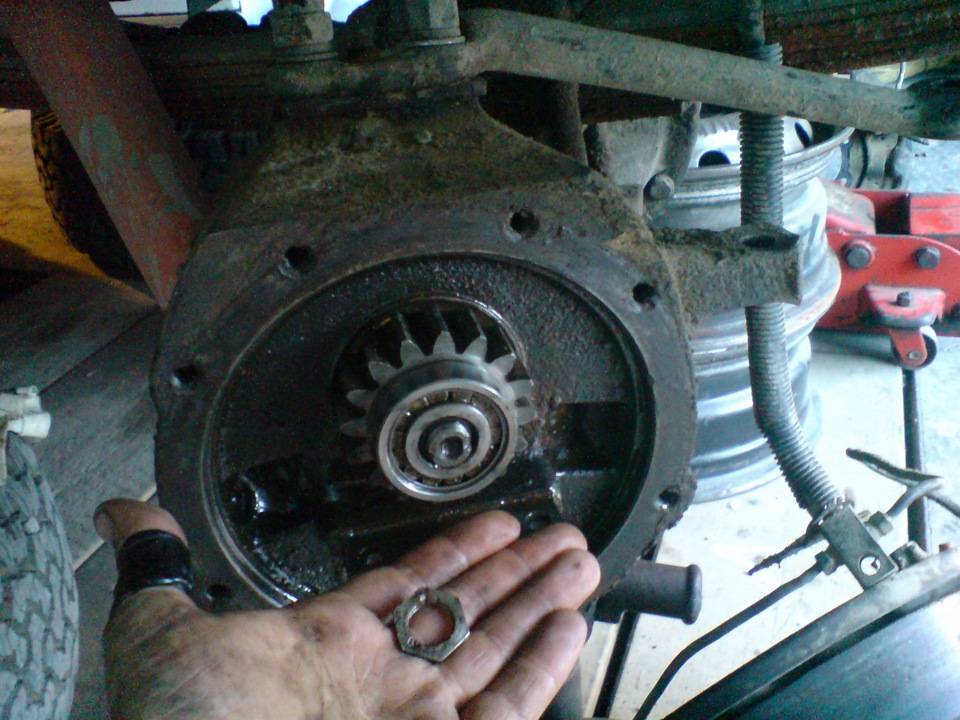 - Большая ведомая шестерня в продольной плоскости находится в сцеплении с главной шестерней. В нее встроен дифференциал из 4 сателлитов.