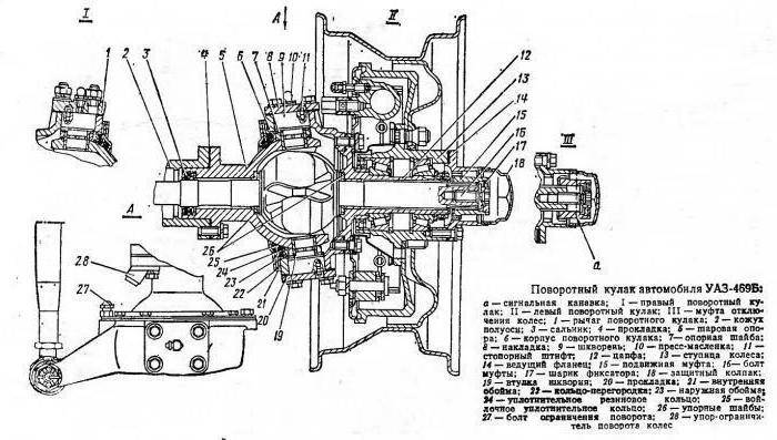 Поворотный кулак переднего моста УАЗ с бортовой передачей: