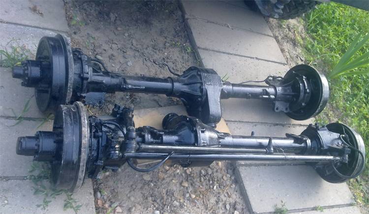 Плюсы: Ремонтопригодность, более скоростные, картер моста имеет “правильную” форму, что позволяет прорезать гряз им, а не нагребать ее перед собой. Богатый выбор блокировок, простота их установки. Простота конструкции. Менее шумные, более комфортная езда. Меньше расход бензина ( чем на “военных”). Повсеместная доступность запчастей. Простота обслуживания. Возможность установки пружинной подвески (незначительные переделки).Минусы: Клиренс 22 см. Не выдерживают критических нагрузок, мост можно легко порвать. Хрупкая главная пара.Вывод: Если ваши маршруты проходят по сельским дорогам и умеренному бездорожью, “Гражданские” мосты — ваш выбор.