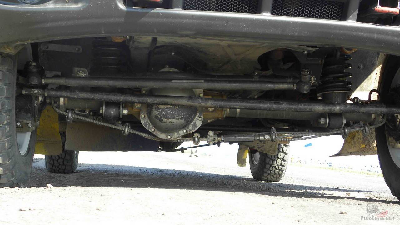 Диаметральная тяга руля прямолинейная и короткая, располагается она от одного колеса к другому. Эта деталь военника не может быть заменена тягой с колхозника. Купить можно «вояку» и без автотяги на передний мост.