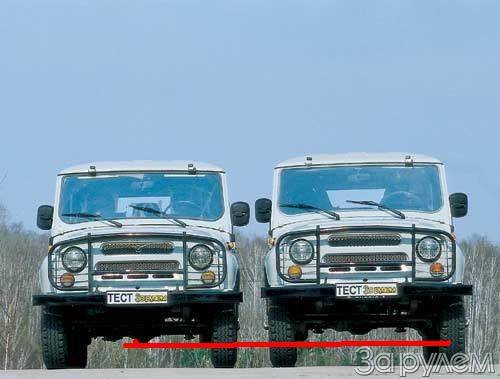 Таким образом, тип моста определяется дальнейшим назначением машины – будет она ездить просто на охоту и рыбалку либо подготавливаться для полноценного оффроуда. Но стоит отметить, что даже гражданский УАЗик на «стоковой» резине способен пробраться и сквозь брод. Но на повседневной использовать эту возможность не стоит: даже на гражданских мостах чувствуются “военные отголоски” — рамная конструкция, жесткая рессорная подвеска.