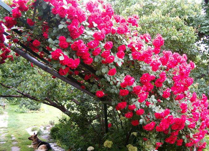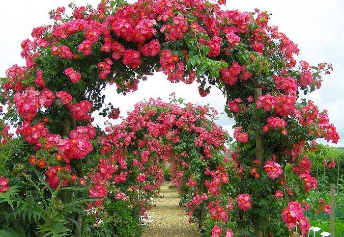 Мелкоцветковые плетистые розы снабжены побегами длинными и при этом очень гибкими, податливыми. Благодаря такой способности, ползучая роза может обвить конструкцию самой причудливой формы, и ее побеги при этом нисколько не пострадают.