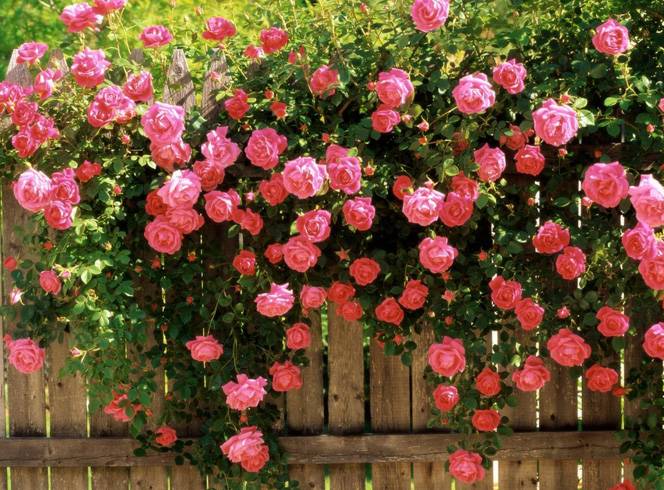 Можно применять цветы и для оформления вертикальных прямых конструкций: шпалер, решеток, заборов. Но для этой цели также подойдут и крупноцветковые разновидности, а вот в украшении оригинальных изогнутых конструкций у вьющихся роз конкурентов нет.