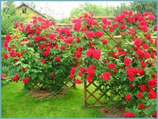 Мелкоцветковые плетистые розы снабжены побегами длинными и при этом очень гибкими, податливыми. Благодаря такой способности, ползучая роза может обвить конструкцию самой причудливой формы, и ее побеги при этом нисколько не пострадают.