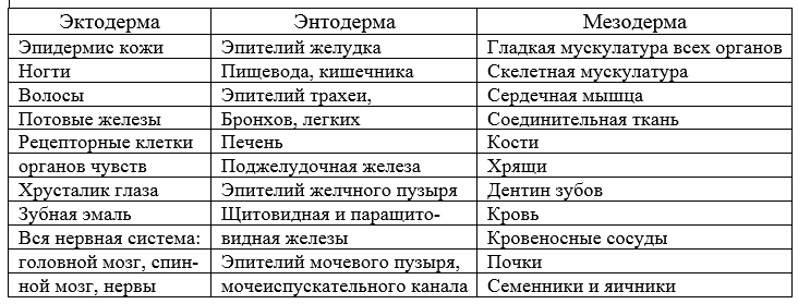 Органы и ткани, образующиеся из зародышевых листков (слоев)