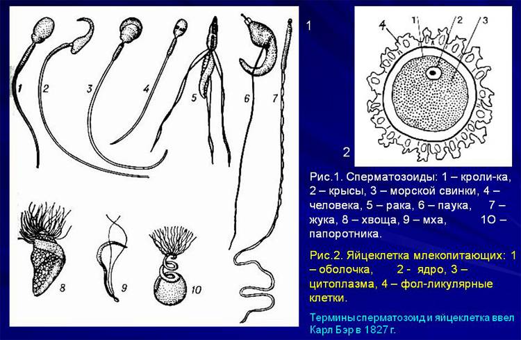 Половые клетки: Гамет различны у двух полов; мужские гаметы называются спермой, а женские гаметы – яйцеклетками.