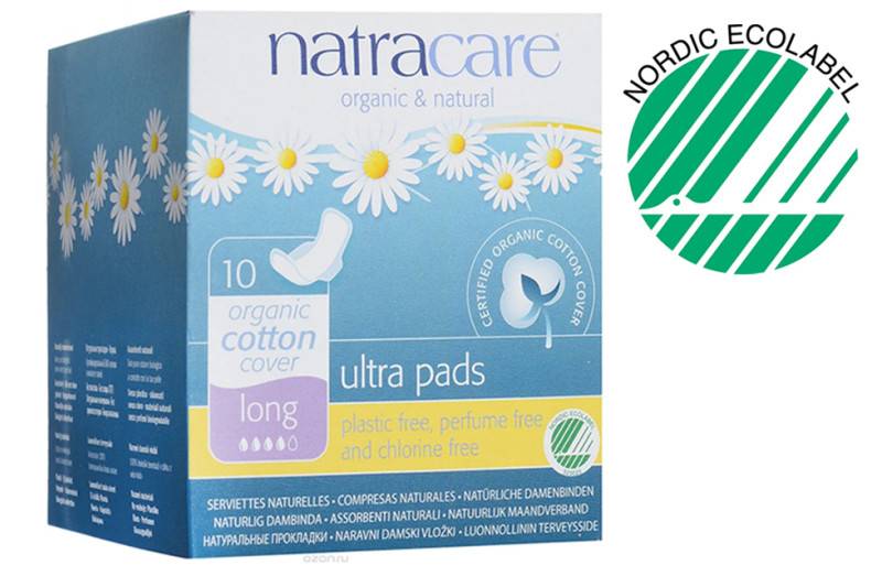 NatraCare были первыми, но! На нашем рынке их непросто найти – это раз. Два – запутанная система экомаркировки и маркетинга не обеспечивает необходимой прозрачности для потребителя, ни на упаковке, ни на сайте – никаких экосертификатов. Хотя они у них есть. И три — в составе этих прокладок есть целлюлоза. Она биосертифицированная, но как с точки зрения экологии это неоптимально, так и с точки зрения удобства ношения и впитываемости. Целлюлоза сбивается при ношении, и прокладки быстро теряют форму. Они недешевы, а тут даже ежедневки не хватает на день, несколько раз в день их приходится менять. Ну, хотя бы один-два.