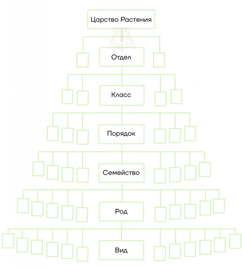 Царство → Подцарство → Отдел → Класс → Порядок → Семейство → Род → Вид.