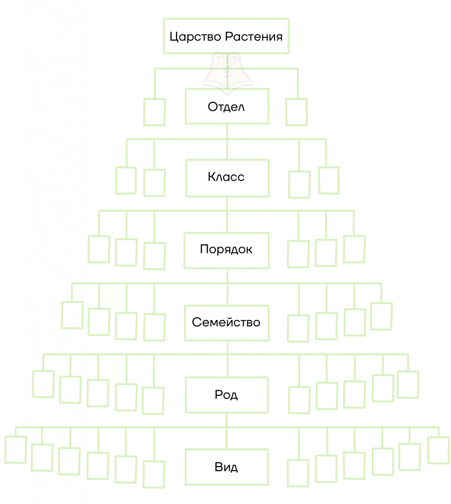 Царство → Подцарство → Отдел → Класс → Порядок → Семейство → Род → Вид.