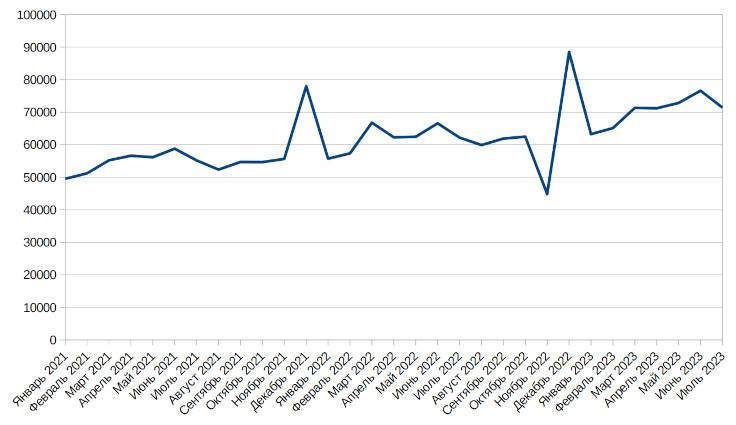 Как менялась номинальная начисленная зарплата в РФ с января 2021 по июль 2023